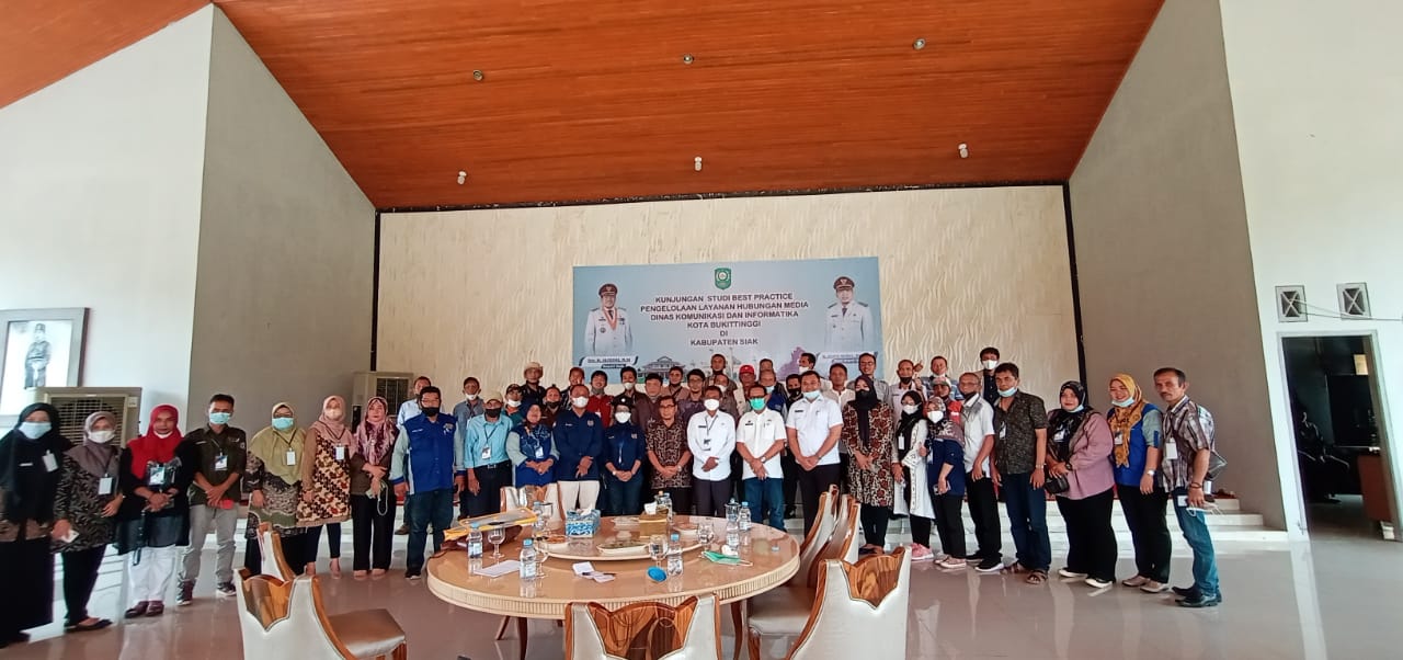 Kunjungan hari pertama pada Rabu (15/12/2021), rombongan wartawan kota Bukittinggi diterima oleh pemerintahan Kabupaten Siak, di Pendopo Dt. Abdi 4 Suku.