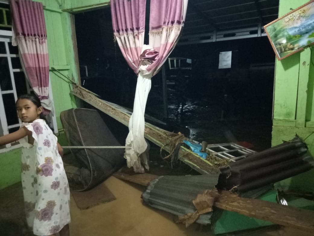 Lebih kurang 1078 KK disaat kejadian terendam air setinggi 1 s/d 5 meter, 3 rumah terseret banjir dan 2 rumah di infokan rusak berat dan tidak bisa digunakan lagi tersapu kayu-kayu dan air bah; semua hanyut dan tersapu banjir dan tidak ada yang tertinggal kecuali pakaian dibadan, serta 30 rumah dinyatakan rusak sedang dan ribuan tergolong rusak ringan” pungkas Bobi.