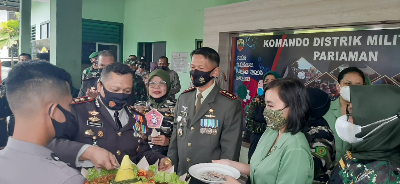 Dalam momen tersebut Kapolres Padang Pariaman memberikan ucapan selamat ulang tahun TNI Ke-76 kepada Dandim dan jajaran sambil nyanyian selamat ulang tahun sembari memotong nasi tumpeng dan kue.