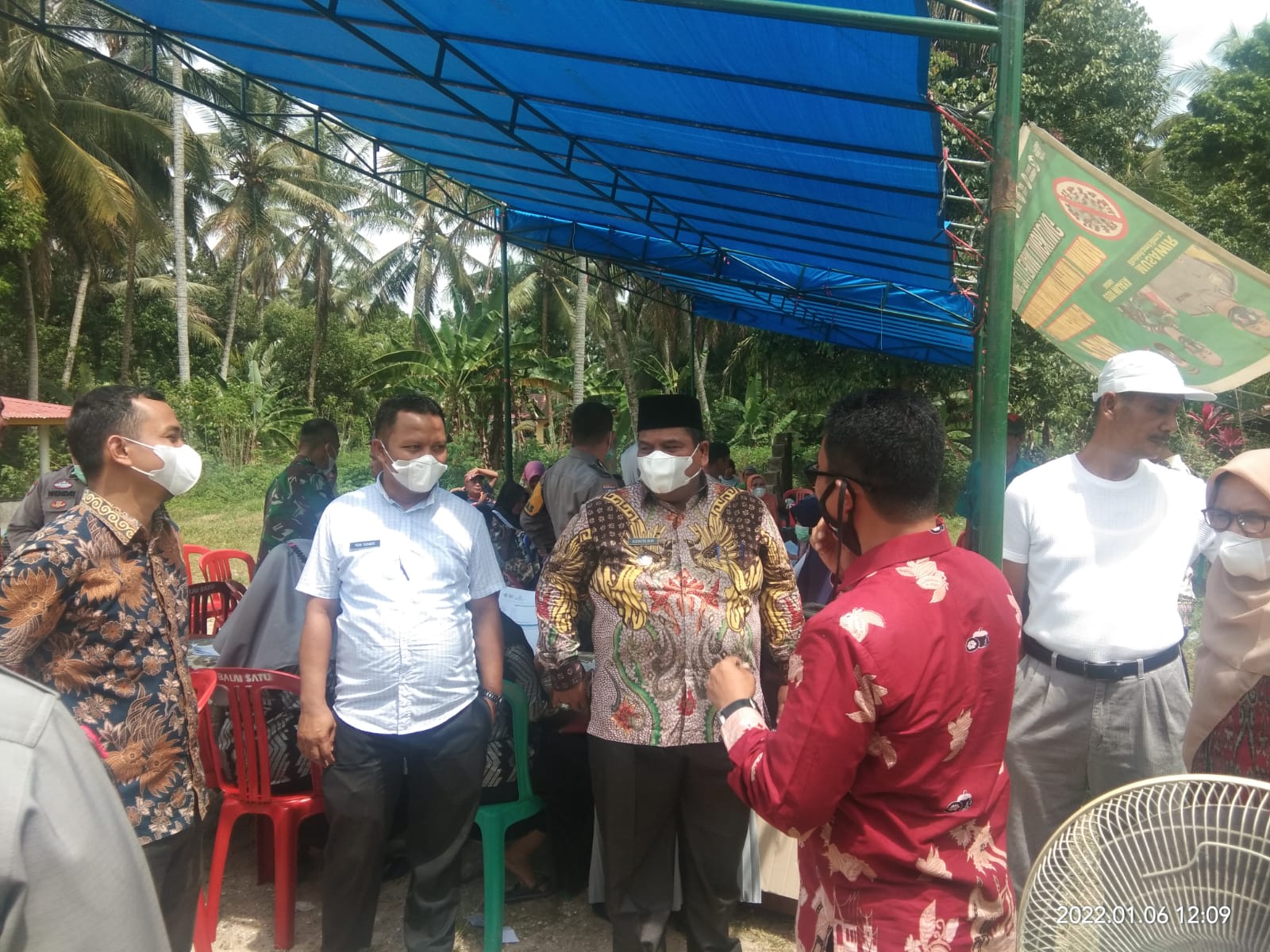 Bersama jajaran Dinas Kesehatan dan Polres Padang Pariaman, Bupati terus lakukan peninjauan pelaksanaan vaksinasi di lokasi-lokasi yang telah ditunjuk oleh Dinas Kesehatan. Capaian target vaksinasi sangat menjadi perhatian khusus Bupati yang akrab di sapa Aciak ini. Kali ini Suhatri Bur mengunjungi lokasi vaksinasi di Nagari Lubuak Pandan Kecamatan 2 ×11 Enam lingkung. Kamis (6/01/2022).