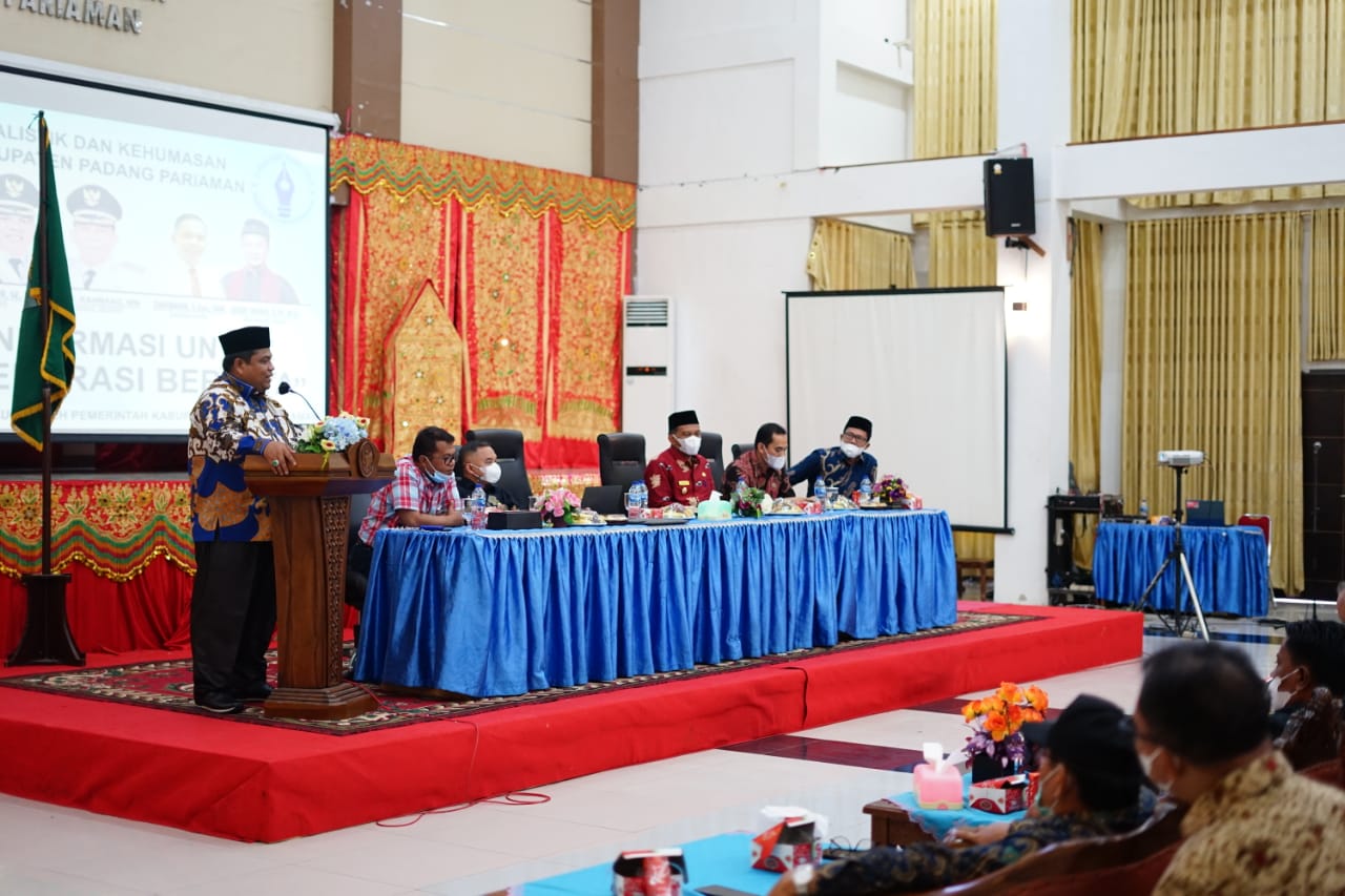 Kegiatan workshop yang mengusung tema “Penguatan informasi untuk mewujudkan Generasi Berjaya” tersebut, dibuka secara resmi oleh Bupati Padang Pariaman Suhatri Bur SE MM didampingi Wakil Bupati Drs. Rahmang, MM, pada Kamis (16/12) bertempat di Hall IKK (Ibukota Kabupaten) Nagari Parik Malintang Kecamatan Enam Lingkung.