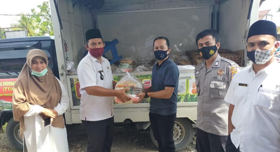 Dan karna kegiatan harus berlangsung dengan aturan protokol kesehatan, maka pada saat berlangsungnya bazar/pasar murah warga yang mendapat bantuan subsidi itu harus silih ganti masuk untuk menjemput dan membeli paket sembako yang telah disediakan sebanyak 100 paket untuk 1 KK perpaketnya.(relis)