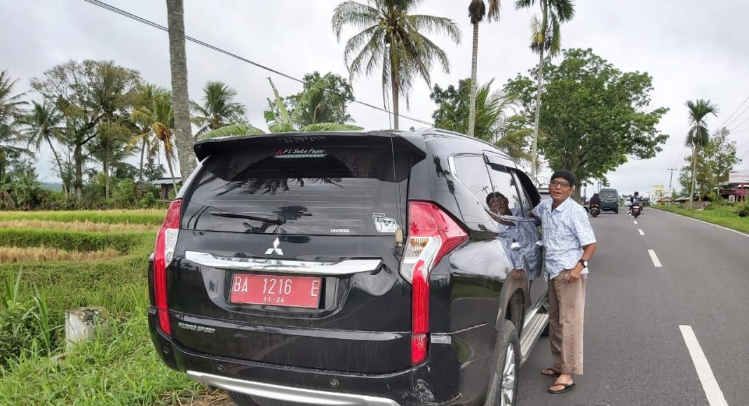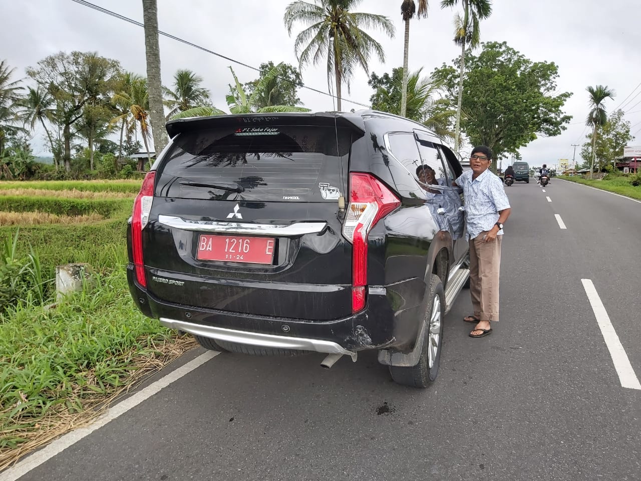 Tanah Datar,Beritasumbar.com – Ditabrak pengendara sepeda motor,mobil dinas Wakil Ketua DPRD Tanah Datar di amankan Satuan Lalu Lintas (Satlantas) Polres Tanah Datar, Rabu 25/11/2020.