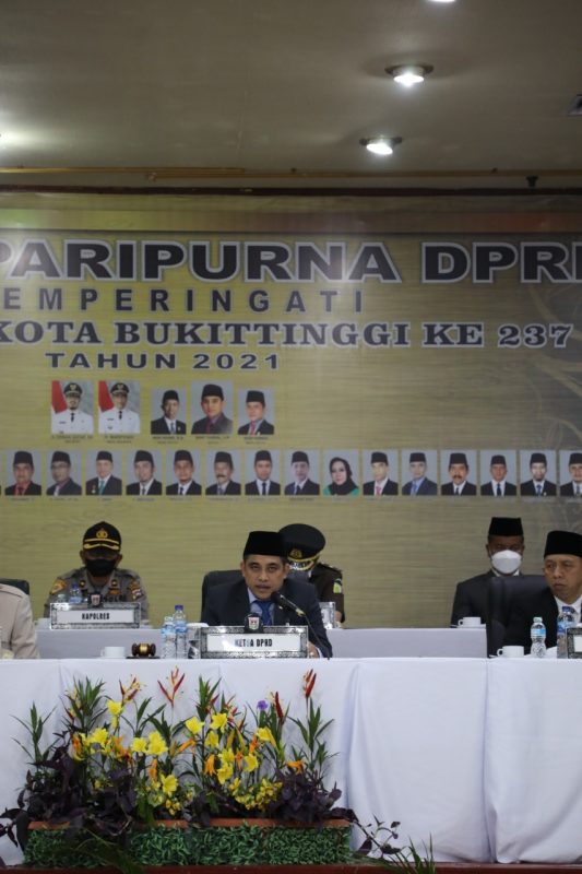 Bukittinggi, beritasumbar.com — Sidang Paripurna Istimewa DPRD Kota Bukittinggi tentang Hari Jadi Kota ke-237 Tahun 2021, Rabu (22/12/2021), bertempat di Balai Sidang Bung Hatta berlangsung khidmat.