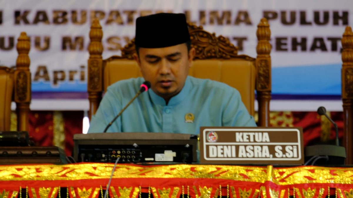 Dalam sambutannya, Deni Asra mengatakan bahwa DPRD Limapuluh Kota mendukung kepala daerah dalam mewujudkan visi misi pembangunan daerah untuk tahun 2021-2026 yang telah tercantum dalam peraturan daerah kabupaten lima puluh kota nomor 3 tahun 2021 tentang rencana pembangunan jangka menengah daerah kabupaten lima puluh kota tahun 2021-2026 yaitu : mewujudkan Lima puluh kota yang madani, beradat dan berbudaya dalam kerangka adat basyandi syarak, syarak basandi kitabullah.