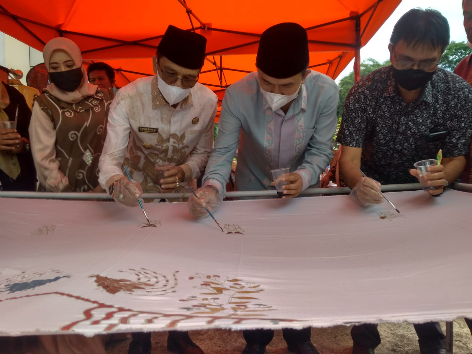 Pada kesempatan itu Bupati, Wakil Bupati, Ketua DPRD berserta istri juga menyerahkan bantuan mesin jahit bagi IKM Busana. Kemudian Launching Selai Jeruk dan Mie Berbahan Baku Buah dan Sayur. Peragakan Membatik (Batik Tulis Gambir). Pembuatan A.K.1. Bursa Lowongan Kerja oleh P3MI dan Easy Pasport. (Tim/Di)