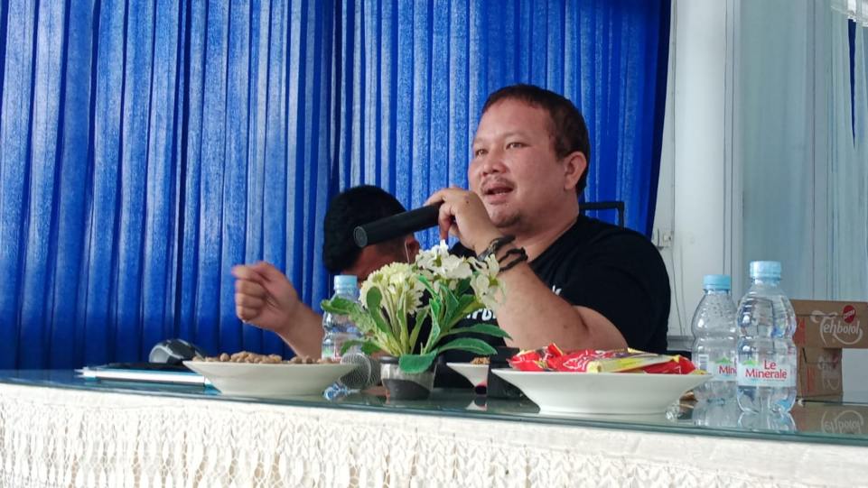 Decky H. Sahputra, Ketua KolaborAksi Kemanusiaan Pasaman Barat / KKPB saat tampil pada workshop tersebut mengajak para pegiat literasi untuk memanfaatkan bahan narasi yang melimpah yang tersedia di Pasaman Barat.