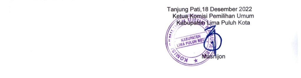 Surat pendaftaran dan kelengkapan dokumen disampaikan kepada KPU Lima Puluh Kota Sejak Tanggal 18 Desember 2022 Sampai dengan tanggal 27 Desember 2022 pukul 16.00 wib waktu setempat melalui: