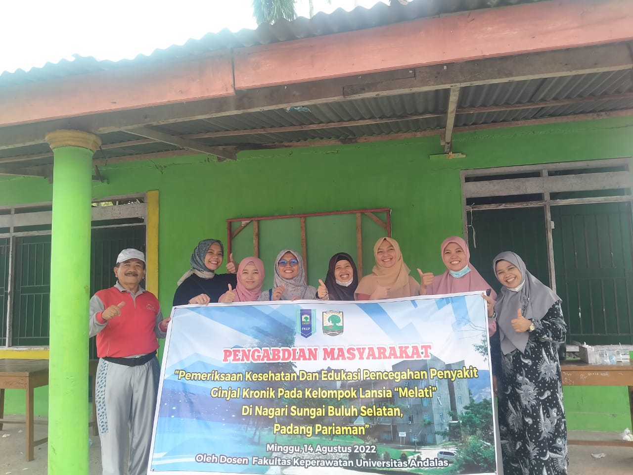 Oleh karena itu pada tahun 2022, dosen dari Fakultas Keperawatan melakukan screening kembali yang berfokus kepada resiko penyakit ginjal pada lansia, dengan melakukan pemeriksaan fisik dan pemeriksaan kesehatan yaitu mengukur tekanan darah pada lansia, kadar glukosa darah dan asam urat. Selanjutnya, lansia diberikan edukasi terkait dengan menjaga kesehatan ginjal. Tim dosen dari Fakultas Keperawatan yang terlibat dalam kegiatan ini adalah Ns. Fitri Mailani, M.Kep, Dr. Emil Huriani, S.Kp, MN., Ns. Rahmi Muthia, M.Kep., Ns. Elvi Oktarina, M.Kep, Sp.Kep,MB., Ns. Esthika Ariany Maisa, M.Kep., Ns. Muthmainah, M.Kep dan Ns. Arif Rohman Mansur, M.Kep.