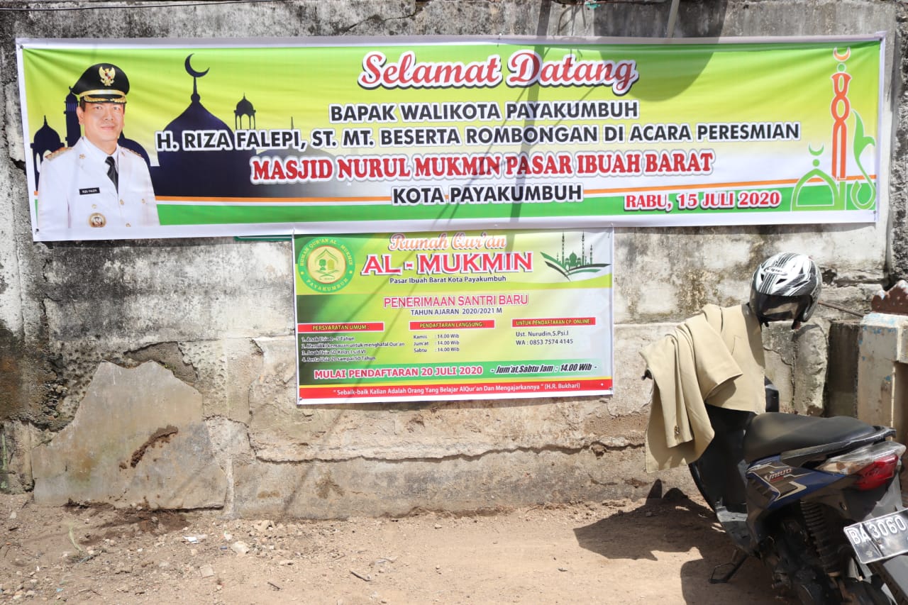 Payakumbuh,BeritaSumbar.com,- Lantunan ayat suci Al-Quran dari qori Nurudin, S.P.si. I dan pembacaan hafalan ayat dari hafidz cilik Fatan mengawali peresmian pemakaian gedung bangunan baru Musola Nurul Mukmin yang berada didekat lingkungan Pasar Ibuh Blok Barat, di Kelurahan Ibuh, Kecamatan Payakumbuh Barat Rabu (15/7).