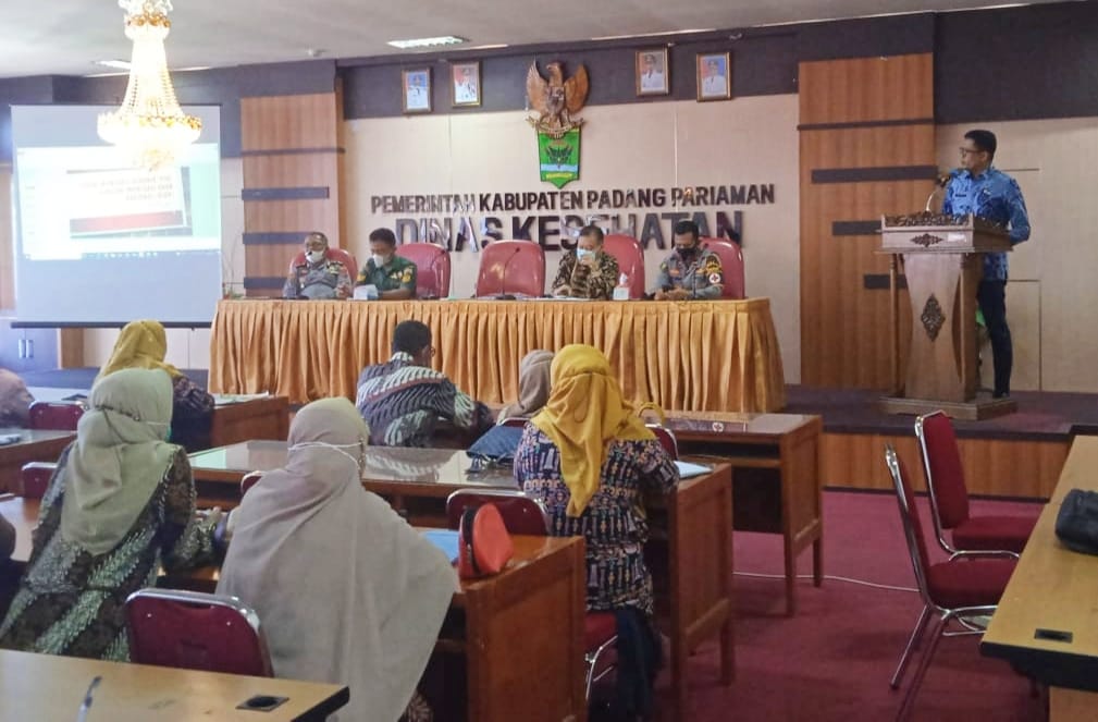 Pertemuan tersebut, dihadiri oleh anggota Forkopimda, Kepala Dinas Kesehatan Kabupaten Padang Pariaman dr. Aspinuddin beserta jajarannya, Kepala OPD terkait, Pengurus TP. PKK dan perwakilan organisasi Dokter, Bidan dan Perawat se Kabupaten Padang Pariaman.