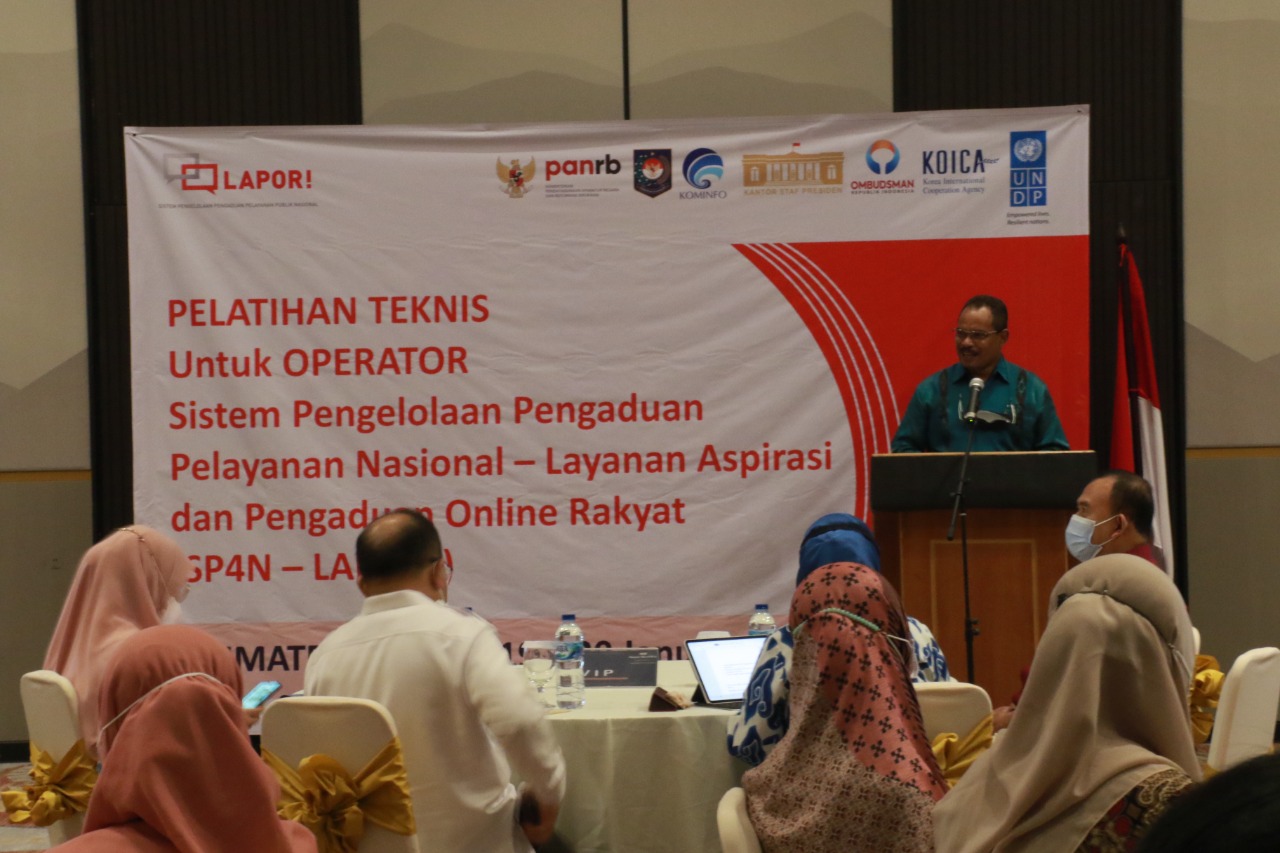 Padang,BeritaSumbar.com,-Kementerian Pendayagunaan Aparatur Negara dan Reformasi Birokrasi (Kemenpan RB) bersama United Nations Development Programme (UNDP) dan Korea International Cooperation Agency (KOICA), menyelenggarakan Penguatan Komitmen Pelaksanaan dan Pelatihan Teknis Operator Sistem Pengelolaan Pengaduan Pelayanan Nasional – Layanan Aspirasi dan Pengaduan Online Rakyat (SP4N LAPOR!), Rabu (19/1/2022)