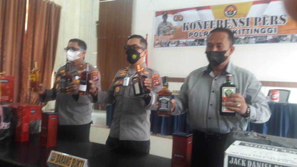 Dalam jumpa persnya di Aula Mapolres, Dodi menyebutkan, miras tersebut diduga berasal dari Batam, Kepulauan Riau, yang akan diedarkan di kota Bukittinggi dan kota Padang.