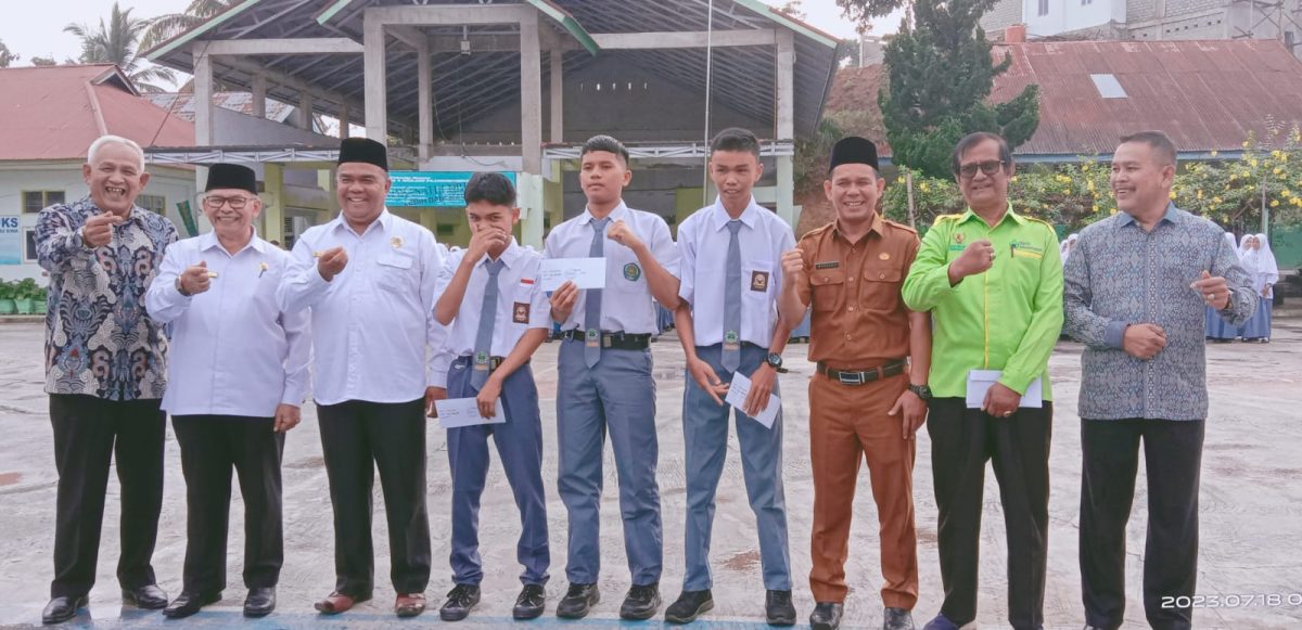 Kabupaten Solok, beritasumbar.com – Lima orang santriwan MAN 1 Solok Plus Keterampilan yang menjadi garin dan imam di Mushalla Nurul Ikhlas Parak Mujua Jorong Kajai Nagari Koto Baru Kecamatan Kubung menerima bantuan dari Badan Amil Zakat Nasional (BAZNAS) Kab. Solok. Selasa (18/07/23)