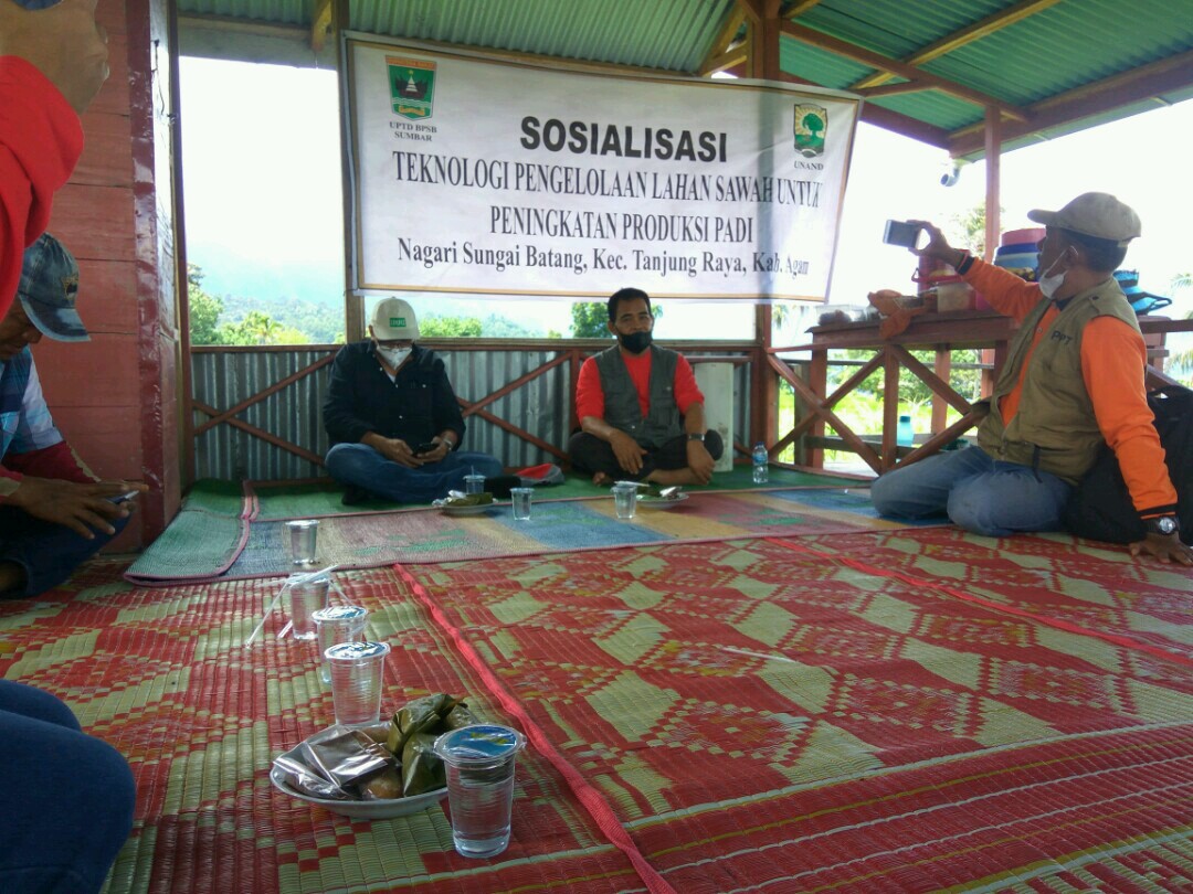 Pada kesempatan ini, narasumber mengemukan betapa pentingnya penambahan bahan organik guna meningkatkan produktivitas lahan. Oleh karena itu, pada kegiatan ini narasumber mengajak kelompok tani untuk melakukan pengelolaan lahan sawah dengan baik dan benar. Dengan harapan bantuan benih unggul padi yang diberikan oleh tim Pengabdian Unand dapat ditanam oleh kelompok tani Nagari Sungai Batang dengan menghasilkan produksi yang