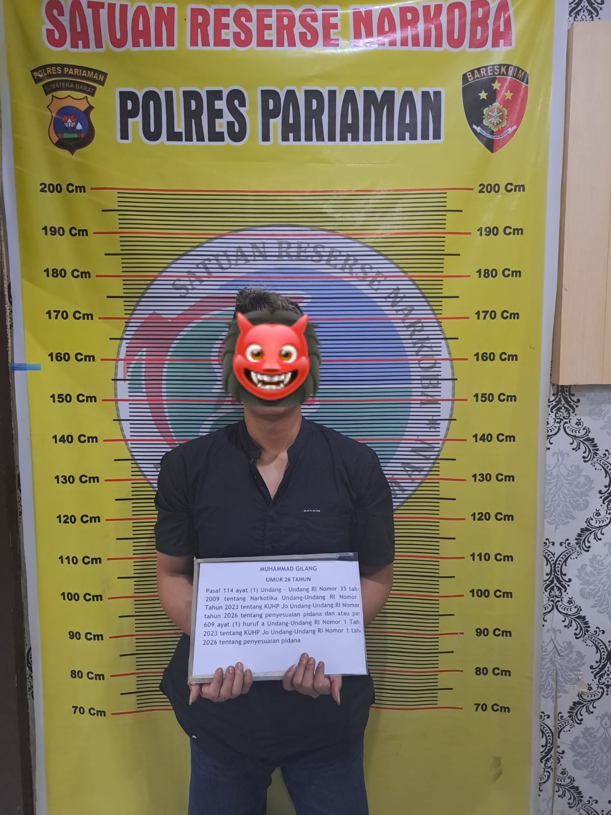 Penangkapan dilakukan berdasarkan Laporan Polisi Nomor: LP/A/19/IV/2026-SPKT/Polres Pariaman tertanggal 17 April 2026.