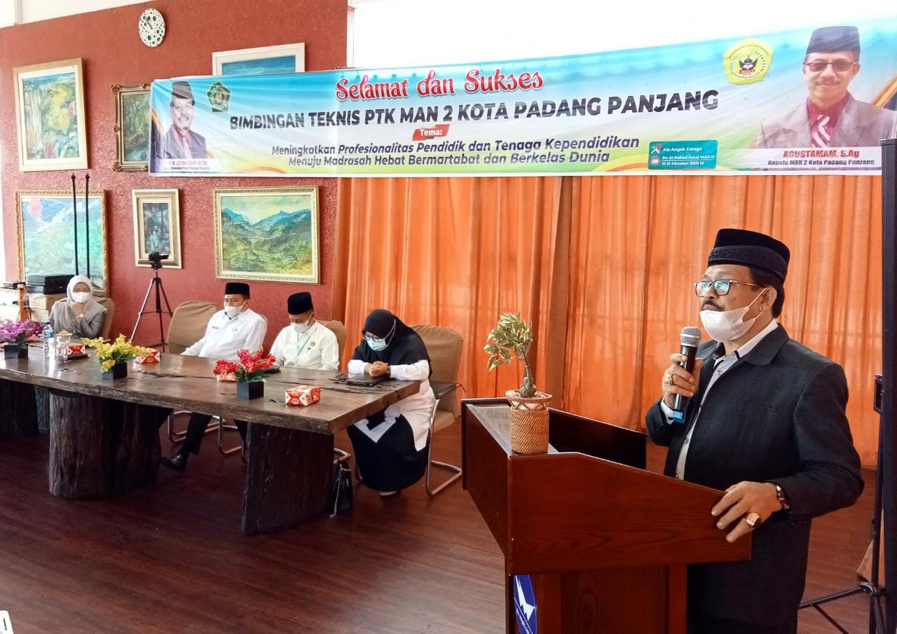 Kegiatan itu dihadiri Kakanwil Kemenag Sumatera Barat yang diwakili oleh Kabag TU Irwan sekaligus sebagai narasumber Bimtek PTK MAN 2 Padang Panjang, Kakankemenag Kota Padang Panjang, Kasi Penmad Emi Ratna Aprilana, Kepala MAN 2 Padang Panjang Agustamam beserta seluruh Keluarga Besar MAN 2 Padang Panjang.